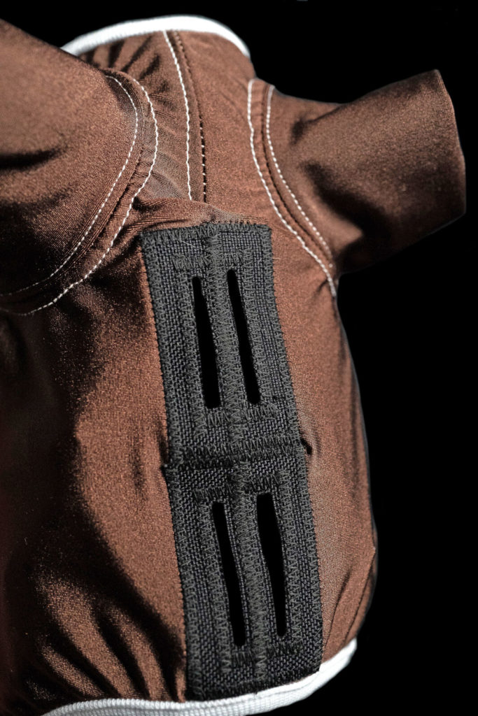 Originally created for use with external telemetry systems, our swine undershirts are designed to be close-fitting and allow users to secure ECG leads, respiration bands, and other leads and catheters. The simplicity of the spandex and Velcro design facilitates the instrumentation of animals, minimizing restraint requirements and technician handling time, while also avoiding the need for extensive wrapping or bandaging. The telemetry device, transmitters, etc., are held in pockets on an outer protective jacket. All leads and tubing are protected and contained inside the system.